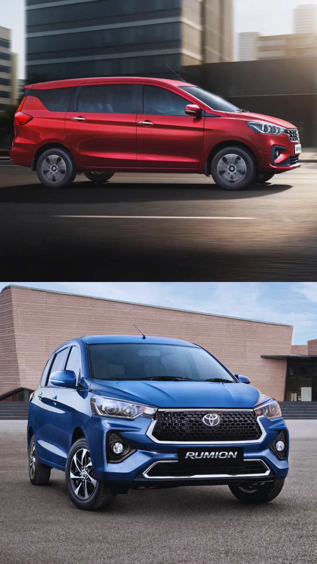 With Toyota's reliability and brand appeal, the Toyota Rumion, a badge-built variant of the Ertiga, offers the same level of comfort and room. It has a smooth petrol engine, adjustable seating, and superb fuel economy. For less than ₹12 lakh, it is a good family option due to its cabin quality and usefulness.